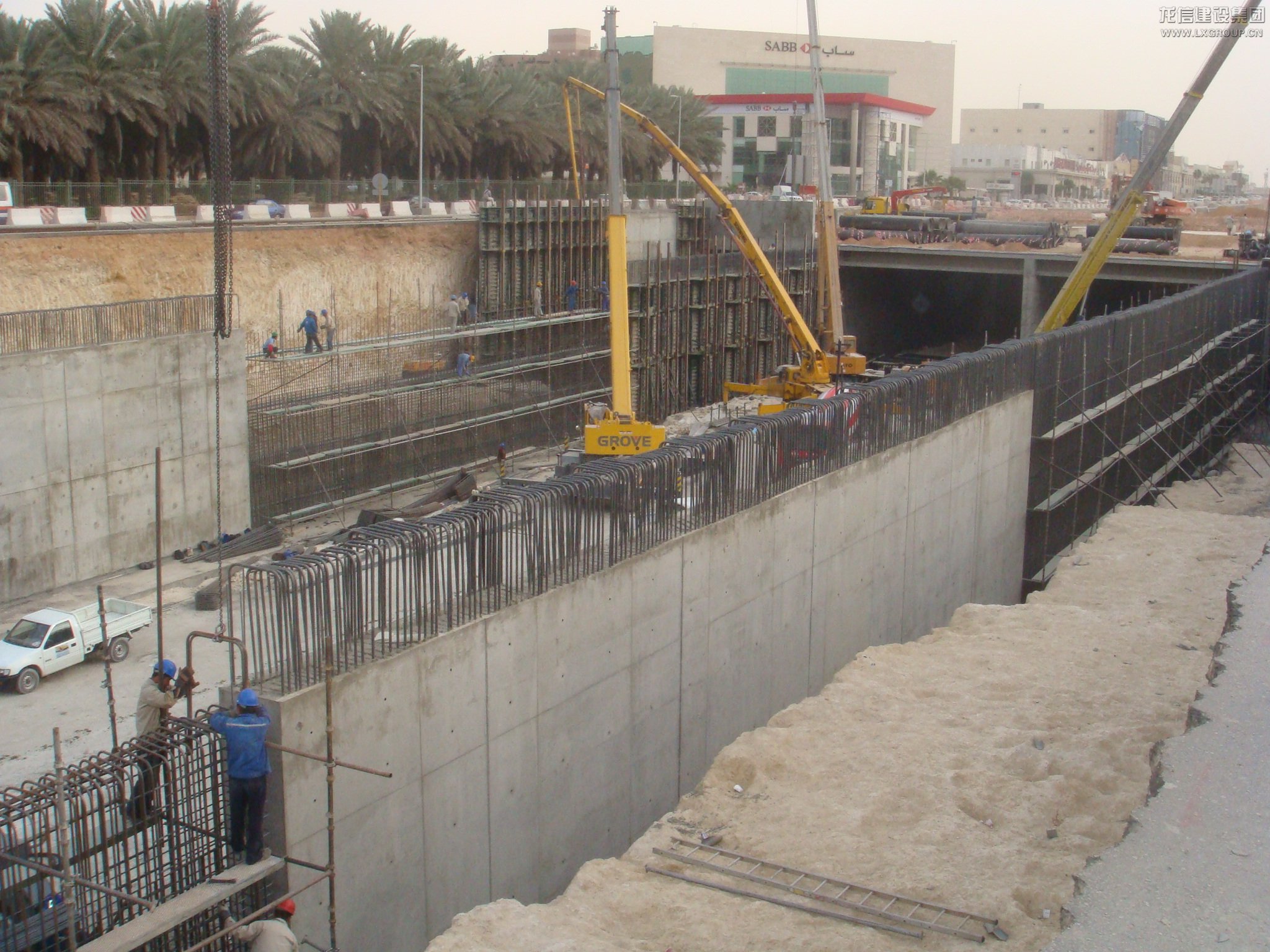 項目位于沙特首都利雅得市阿仆杜拉國王大道上,全長5KM,分為阿卜杜拉•阿齊茲地下通道、歐萊雅路-法赫德國王路隧道、塔卡蘇斯地下通道及普瑞恩施•土耳其路地下通道。總包方為沙特奧吉公司,龍信公司分包該項目的全部混凝土結構工程,澆筑混凝土達到16萬立方,分包合同總金額為3200.00萬里亞爾。于2008年9月開工,并在2011年02月完工,工期比總包方規(guī)定的時間提前了半年,并且質(zhì)量上面受到了總包的一片好評。