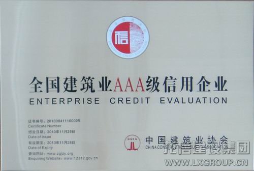 2013年獲得全國建筑業AAA級信用企業