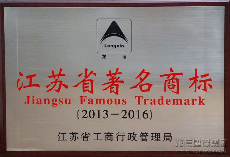 經江蘇省工商行政管理局認定,龍信商標獲評度江蘇省著名商標。 龍信集團領導班子及時洞悉市場經濟的發展,意識到品牌效應的巨大價值。商標戰略是龍信集團品牌建設的重要組成部">