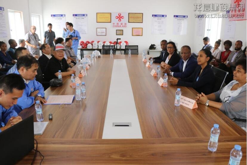 在會議室,杜大使簡短致辭,歡迎席爾瓦總理一行視察援佛得角新校區項目部,認為總理先生到訪,對項目全體人員是一種巨大的鞭策和鼓舞。