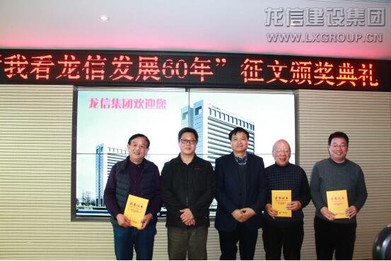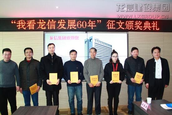 1月13日,由龍信集團主辦、海門日報社承辦的“我看龍信發(fā)展60年”征文頒獎活動在龍信大廈五樓會議室隆重舉行,龍信集團董事長陳祖新、總經(jīng)理唐愛東、副總經(jīng)理何咸軍、辦公室主任蔡颯爽,海門市委宣傳部副部長、海門日報社社長沈建生、總編范軍等參加了本次活動。本次活動是龍信集團60周年慶典系列活動之一,得到了海門各界人士的踴躍參與,共收到來稿200多篇,參與人數(shù)超百人。
