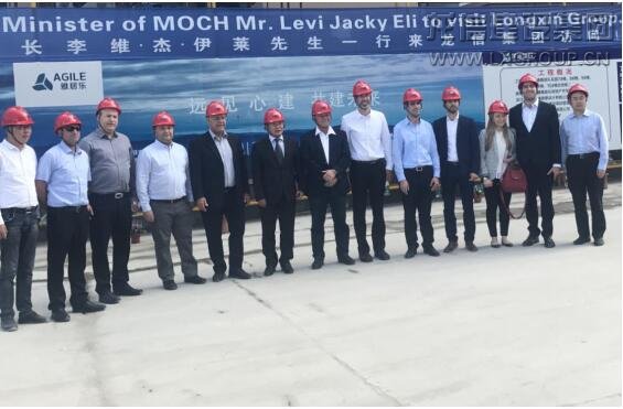 以色列住建部副部長李維 杰 伊萊先生考察團一行視察了項目現場,對整個項目的施工時間節點,項目規模,建造成本,銷售情況做了初步的了解,對項目場容場貌給予充分肯定,部長先生用震撼來形容龍信項目現場給他留下的深刻印象,同時對中國國內的現場的施工組織管理、質量標準和安全標準給予了高度贊揚,感謝龍信集團此次的熱情接待工作。