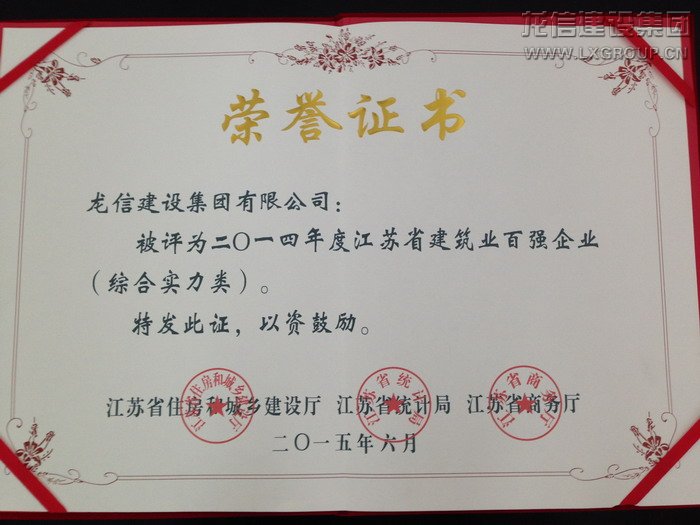 龍信集團獲2014年度全省建筑業“百強企業”綜合實力百強榜第六位