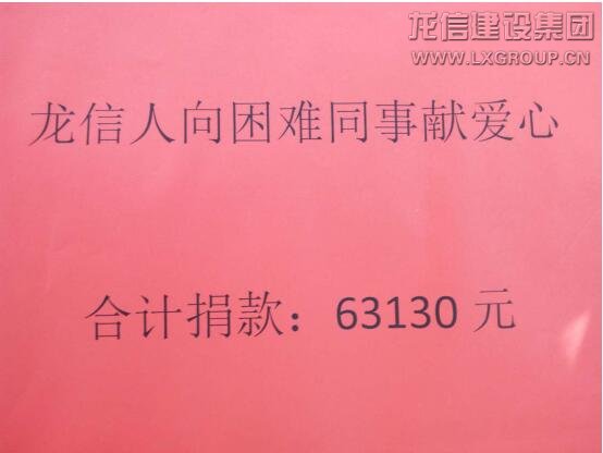 南京區(qū)域公司員工王二寶,2012年進(jìn)入龍信從事鋼筋翻樣工作,該同志吃苦耐勞,對工作認(rèn)真負(fù)責(zé),深受項目部領(lǐng)導(dǎo)好評。王二寶家住江蘇泗陽,其妻在家務(wù)農(nóng),兩個孩子均上學(xué)讀書,其家庭主要靠王二寶工資來養(yǎng)家糊口,日子雖然過得清苦,但也其樂融融。天有不測風(fēng)云,人有旦夕禍福,2017年底,其妻被檢查出乳腺癌,手術(shù)加后期6次化療等費用預(yù)計需25萬元左右。面對突如其來的家庭變故,王二寶不得不舉債為妻治病,家庭條件也因病致貧。
