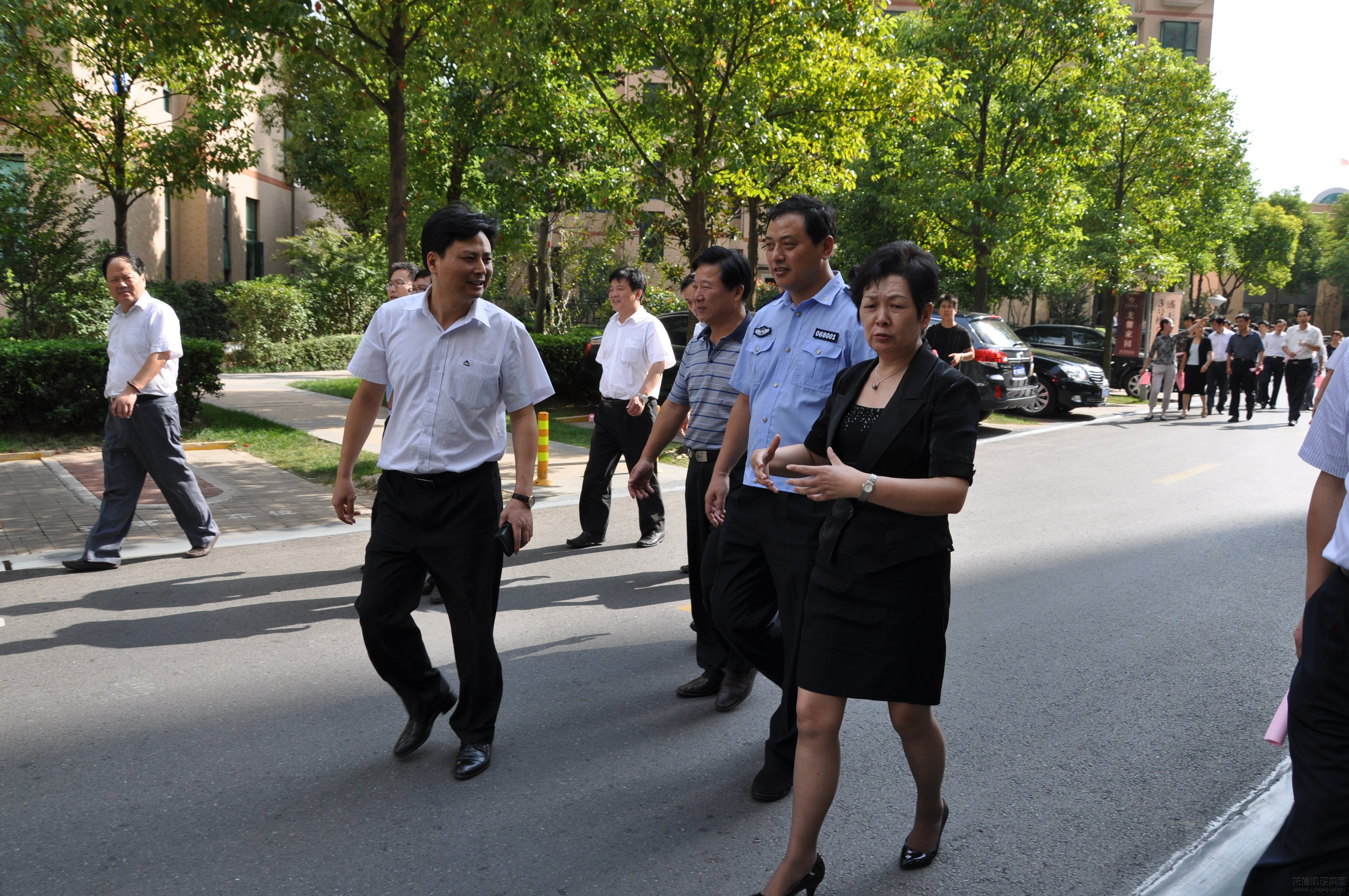 由肖市長帶領的一行人,首先對大門口道閘系統進行了參觀,在觀看的同時,對小區人車分流的理念表示了贊揚。龍信物業在日常工作中,將安全工作作為一個重要組成部分,硬件方面,建立了人防、物防、技防相結合的安全防范網絡。