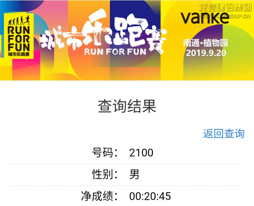 龍信團隊積極參賽,選手們都取得較好成績,2100號選手季宏標、2122號選手李文華分別取得龍信團隊樂跑賽第一、第二名,在本次萬科南通城市樂跑賽中排名較前。