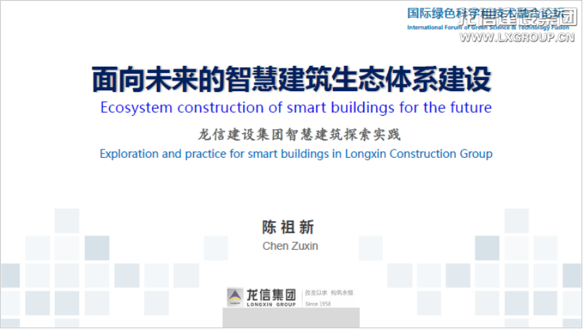 陳祖新董事長作題為“面向未來的智慧建筑生態體系建設”的大會報告,從“傳統建筑走向智慧建筑”“智慧建筑衍生生態體系”“四梁八柱支撐體系建設”“商業模式促進生態進化”“融合發展面向未來模式”五個方面,系統介紹龍信集團關于智慧建筑生態體系建設的思考與探索實踐。