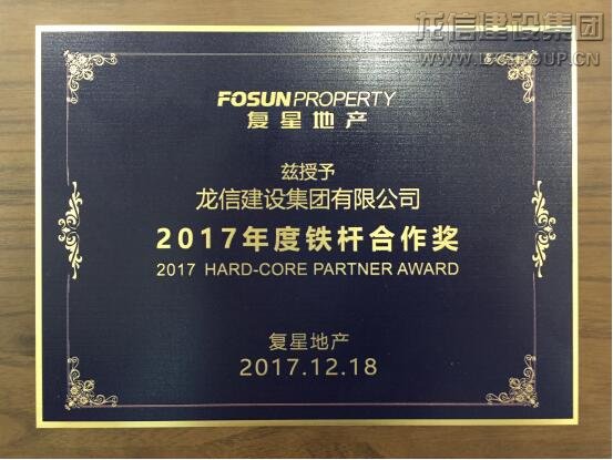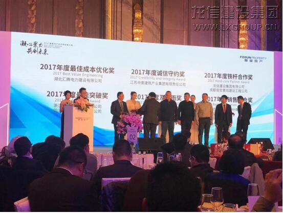 12月18日,復星地產2017年度“凝心聚力,共創未來”合作供應商大會在上海萬達瑞華酒店勝利召開。龍信集團被復星地產授予“2017年度鐵桿合作獎”榮譽稱號,龍信二分公司二部經理施建昌應邀出席頒獎大會并領獎。