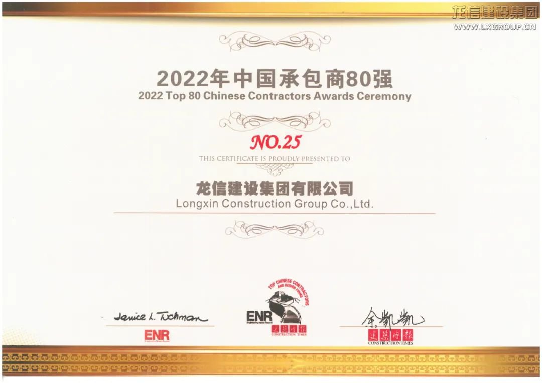 龍信建設集團榮列2022年“中國承包商80強”第25位